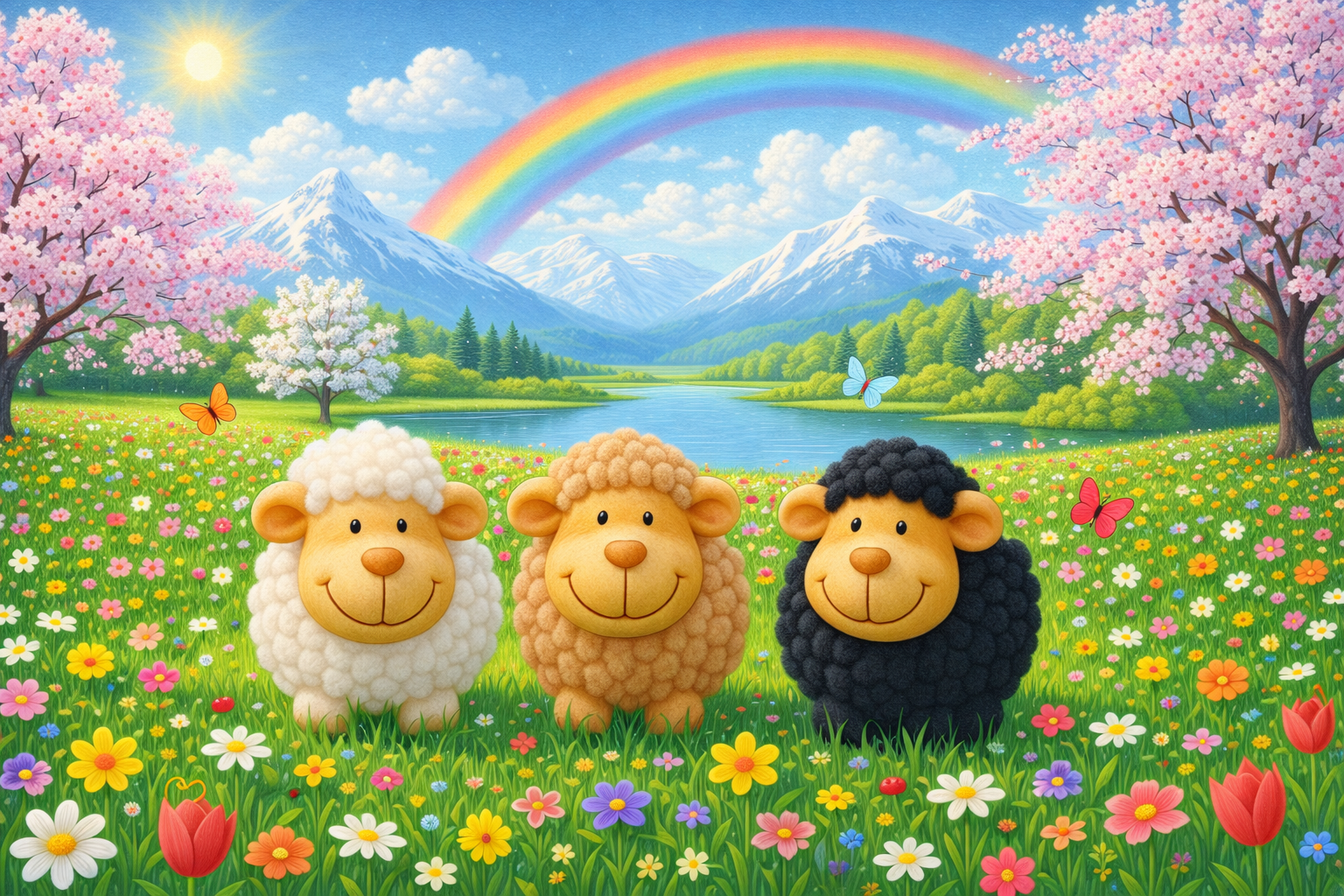 Enfin, dans chaque nuage, on trace à l’encre et au coton-tige unes spirale qui commence dans la gommette. Au pastel gras, on ajoute des tiges, des feuilles et de l’herbe en bas de chaque page.
